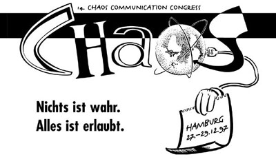 14. Chaos Communication Congress | 1997 | Hamburg, Eidelstedter Bürgerhaus | Nichts ist wahr. Alles ist erlaubt. | schwarz-weiß | tbd | ![]() |