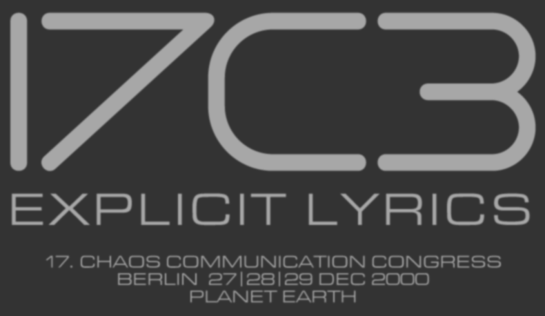 17C3 | 2000 | Berlin, HAKP | Explicit Lyrics | Eurostile Round Pro Extended Medium | ![]() |