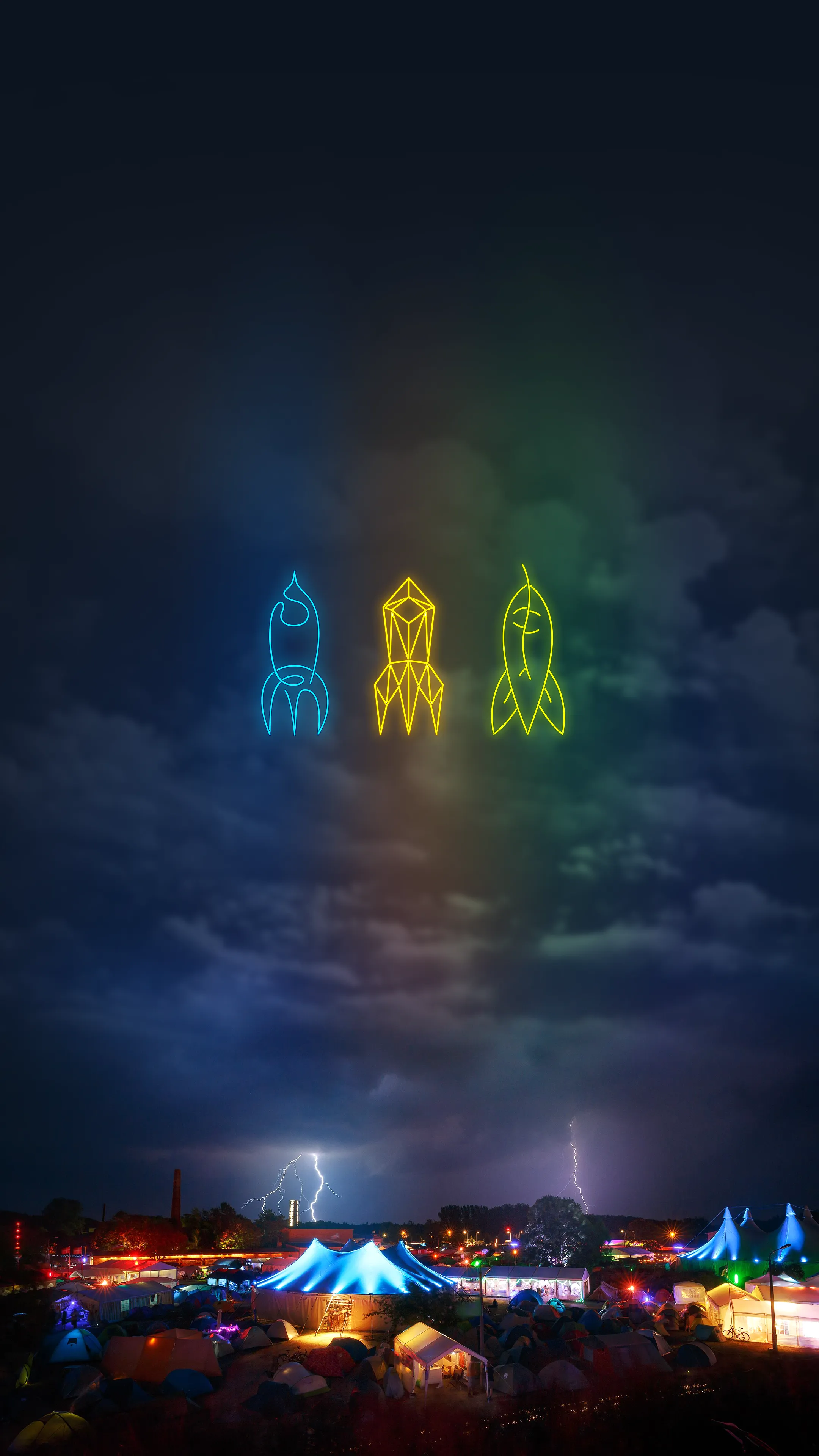 Camp 2019 | 2019 | Mildenberg, Ziegeleipark | Kein Motto | CMYK 90/48/0/0, 100/57/12/66, 0/19/89/0, 6/32/100/24, 54/0/100/0, 55/9/95/45 Pantone 285 C, 540 C, 123 C, 125 C, 376 C, 575 C |