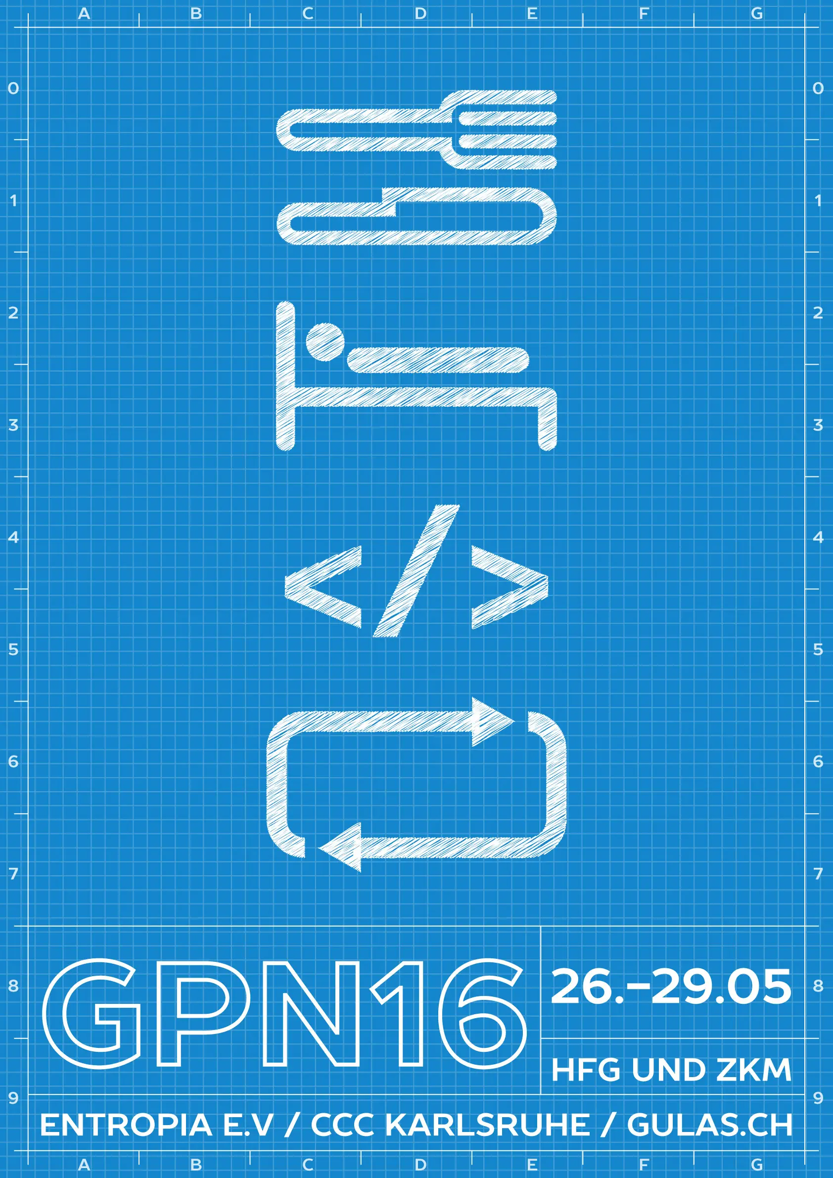 GPN16 | 2016 | Karlsruhe, HfG & ZKM | Eat. Sleep. Code. Repeat | Prosto Sans Bold | ![]() |