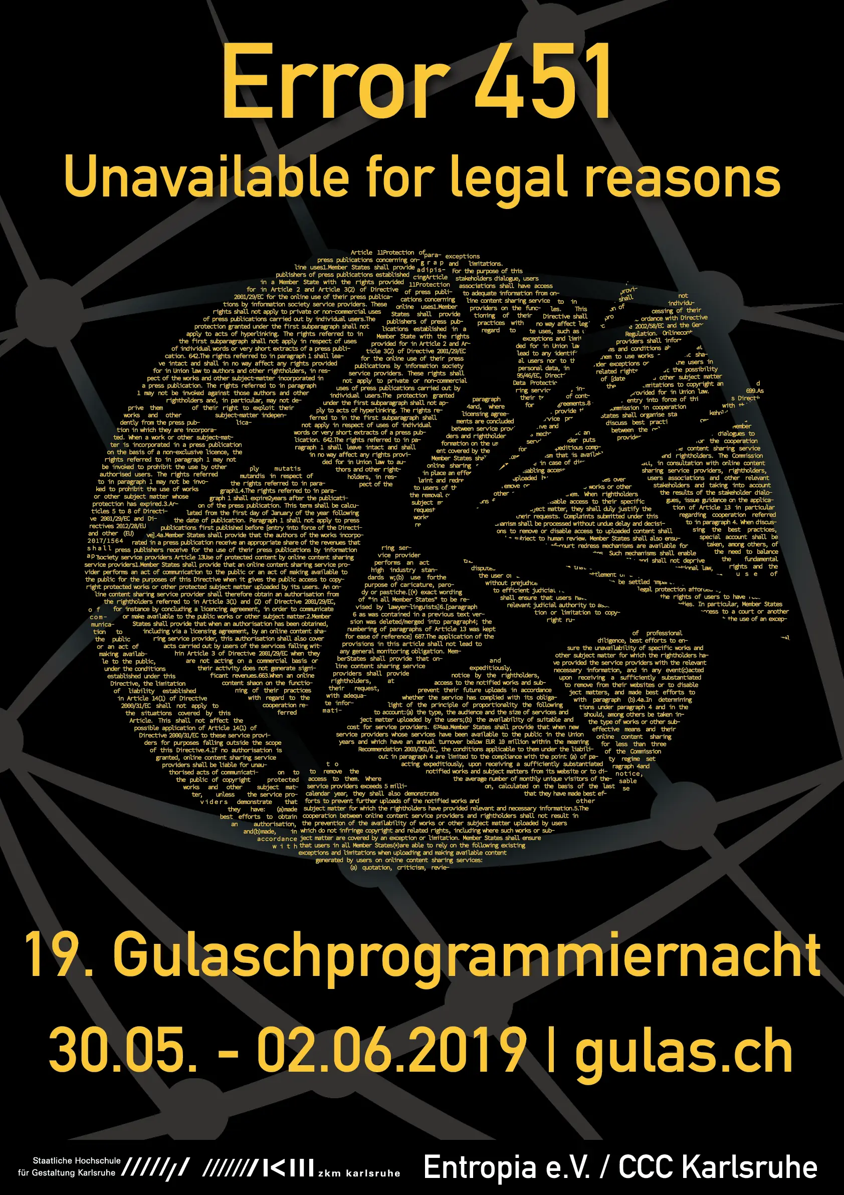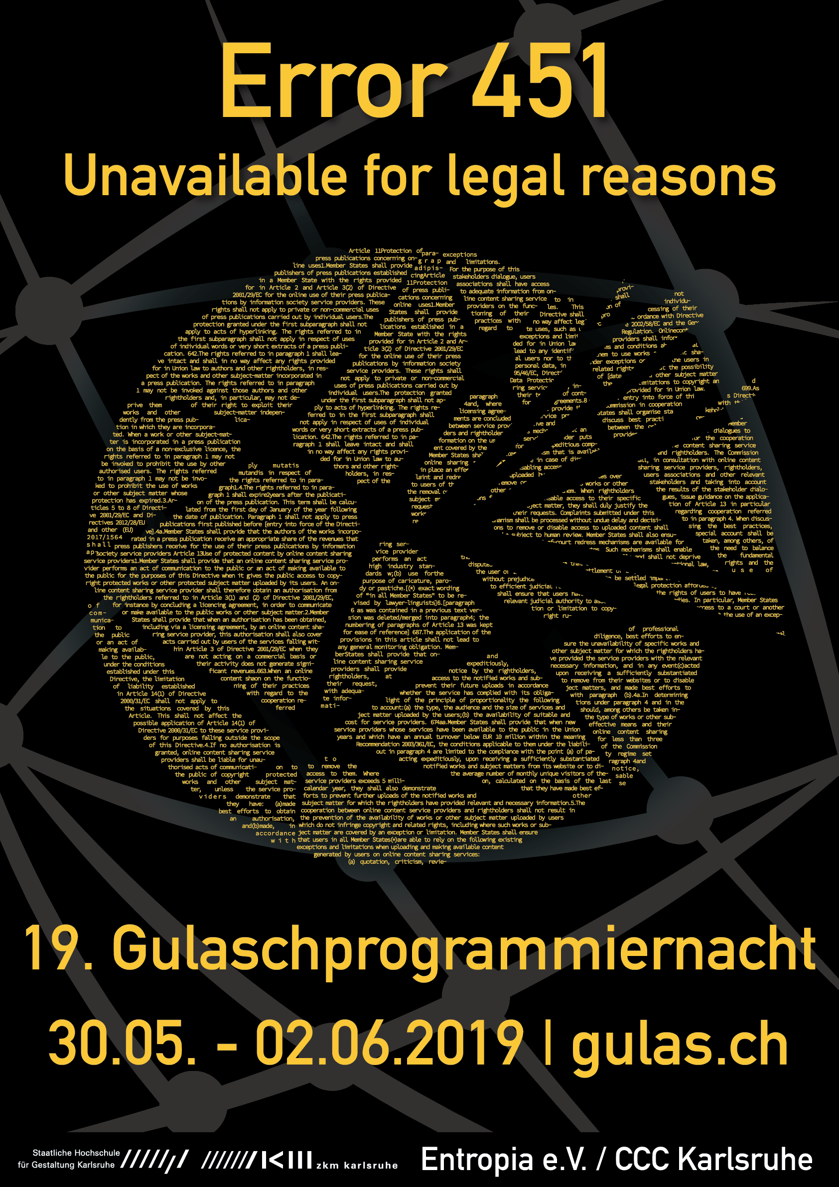 GPN19 | 2019 | Karlsruhe, HfG & ZKM | Error 451 – Unavailable for legal reasons | Mittelschrift DIN D | ![]() |