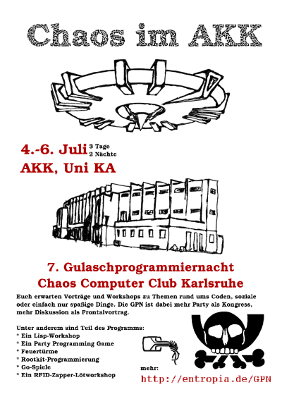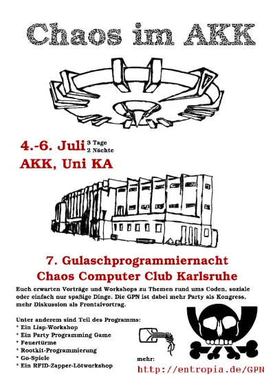 GPN7 | 2008 | Karlsruhe, AKK | Chaos im AKK | tbd | ![]() |