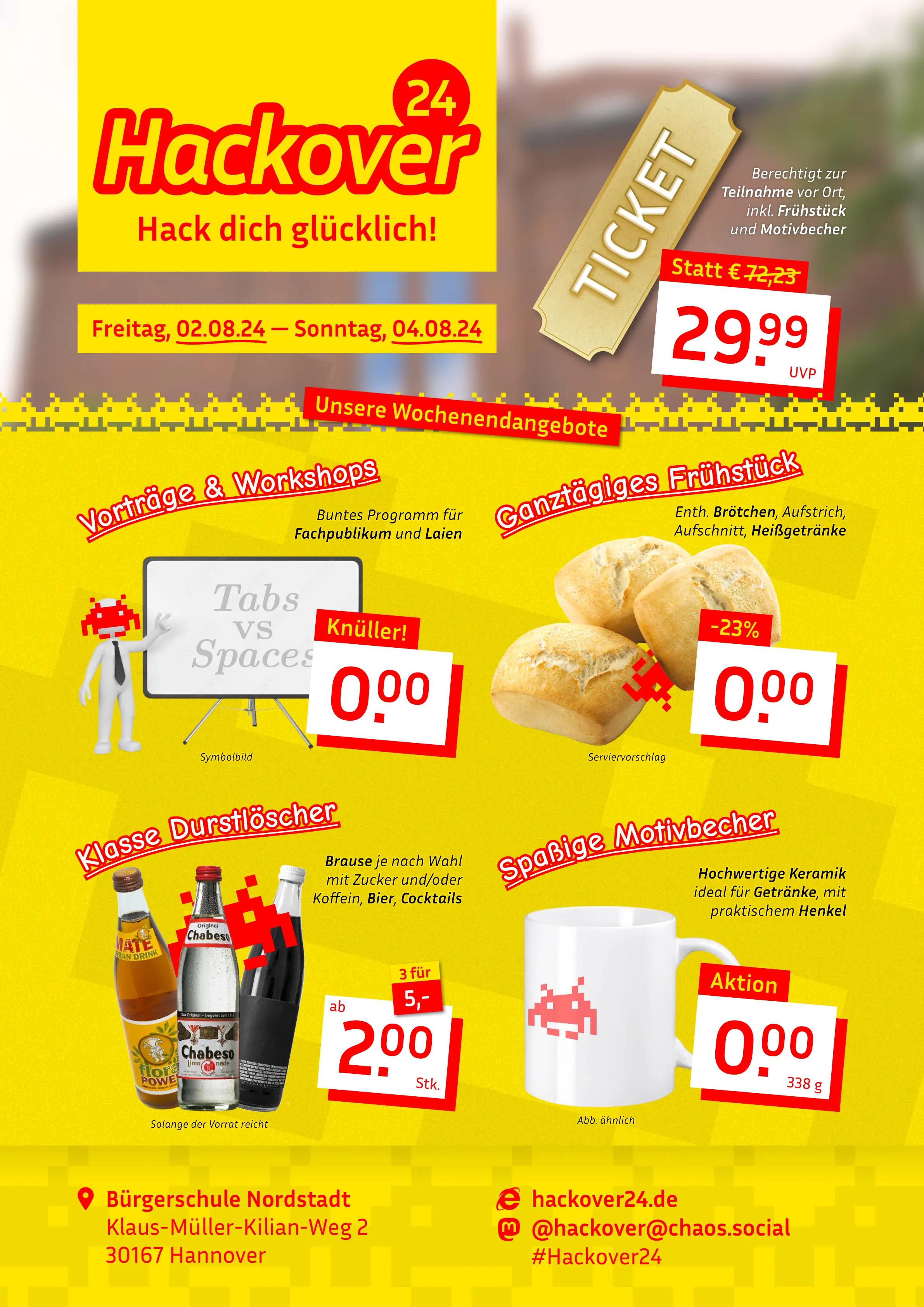 Hackover 2024 | 2024 | Hannover, Bürgerschule Nordstadt | Hack dich glücklich! | Inria Sans, Comic Neue | ![]() |