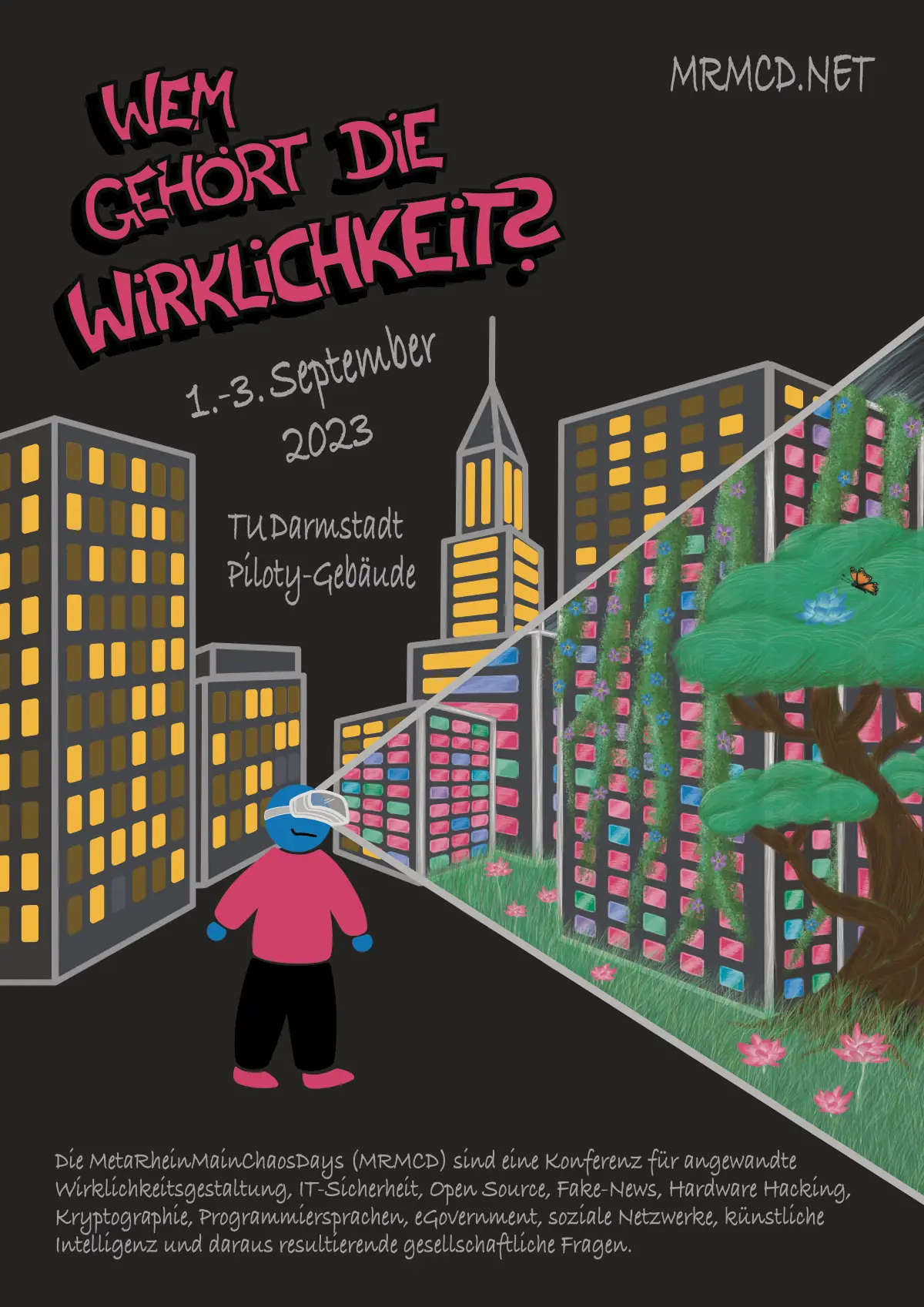 MRMCD 2023 | 2023 | Darmstadt, Hochschule | Wem gehört die Wirklichkeit? | Handgemalt | ![]() |