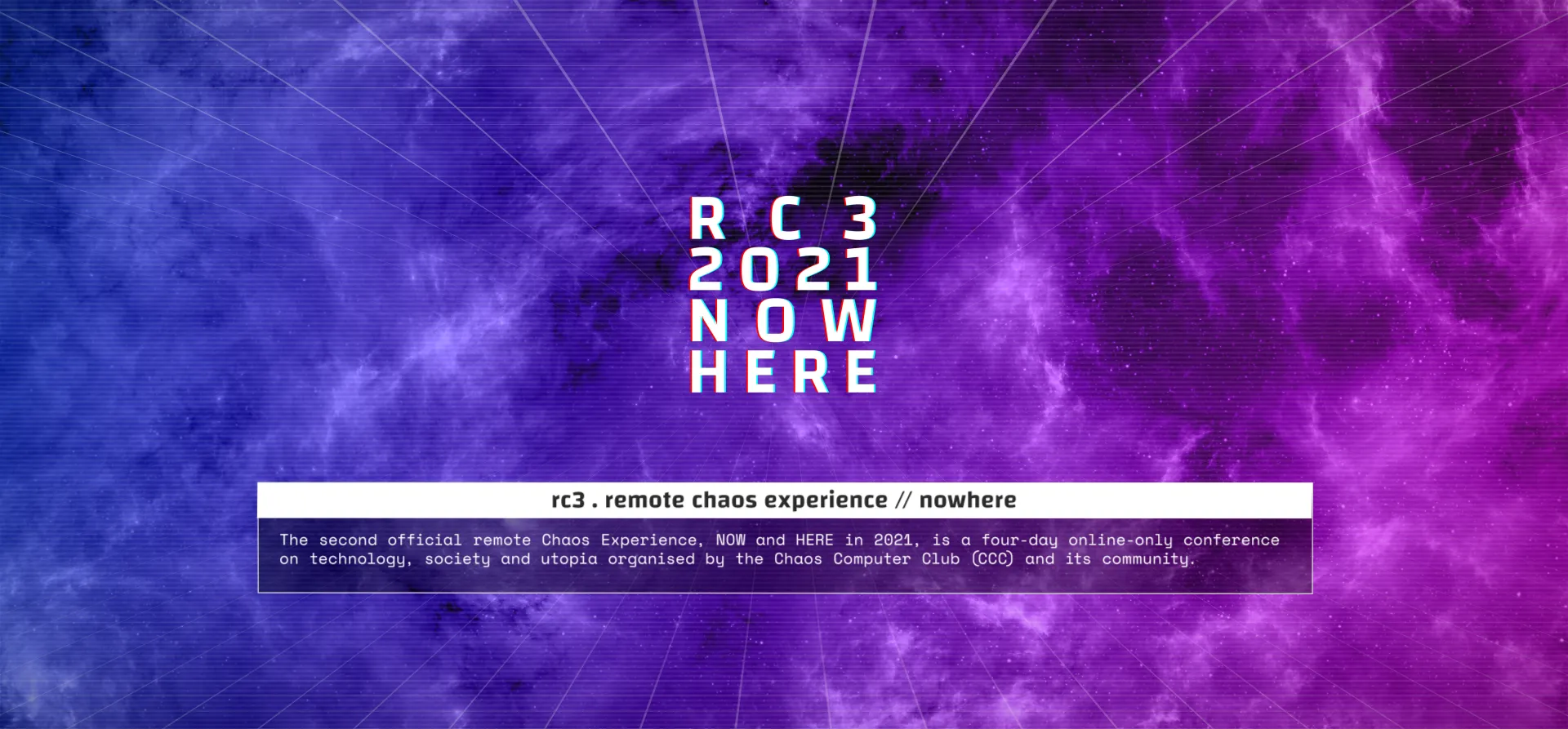 rc3 2021 | 2021 | Cyberspace | RC3 NOWHERE | Changa, Space Mono | ![]() |